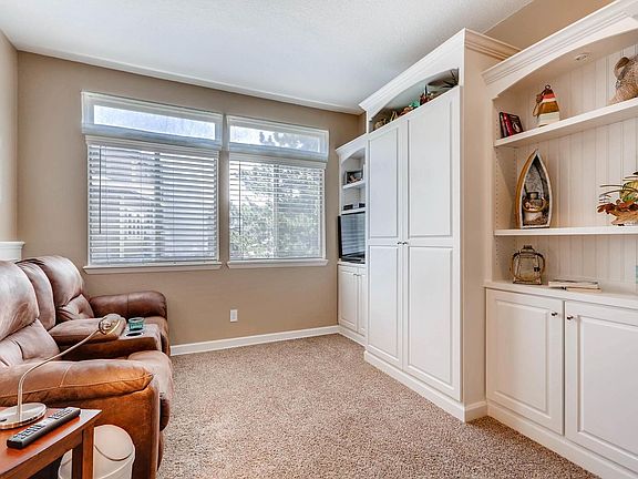 This spacious 1 bedroom/1 bath second floor condominium is conveniently located in the heart of the DTC. Recently remodeled, this home has style and taste along with an open floor plan that includes engineered hardwood and carpet flooring. Enjoy the beautiful built-in entertainment center in the living room which includes a Murphy bed for guests, as well as a gorgeous stone gas fireplace with rustic accents. The kitchen has newer cabinets and stainless-steel appliances and the dining area has a decorative built-in bookshelf with wainscoting and room for a small table with chairs next to the balcony. There is a cozy bedroom just off of the dining room with an attached bath with walk-in shower, private water closet, and newer vanity. An attached garage allows for privacy and security in addition to a storage closet. The furnace and water heater were purchased new and placed in 2017. Don't miss out on this One-Of-A-Kind Gem!!