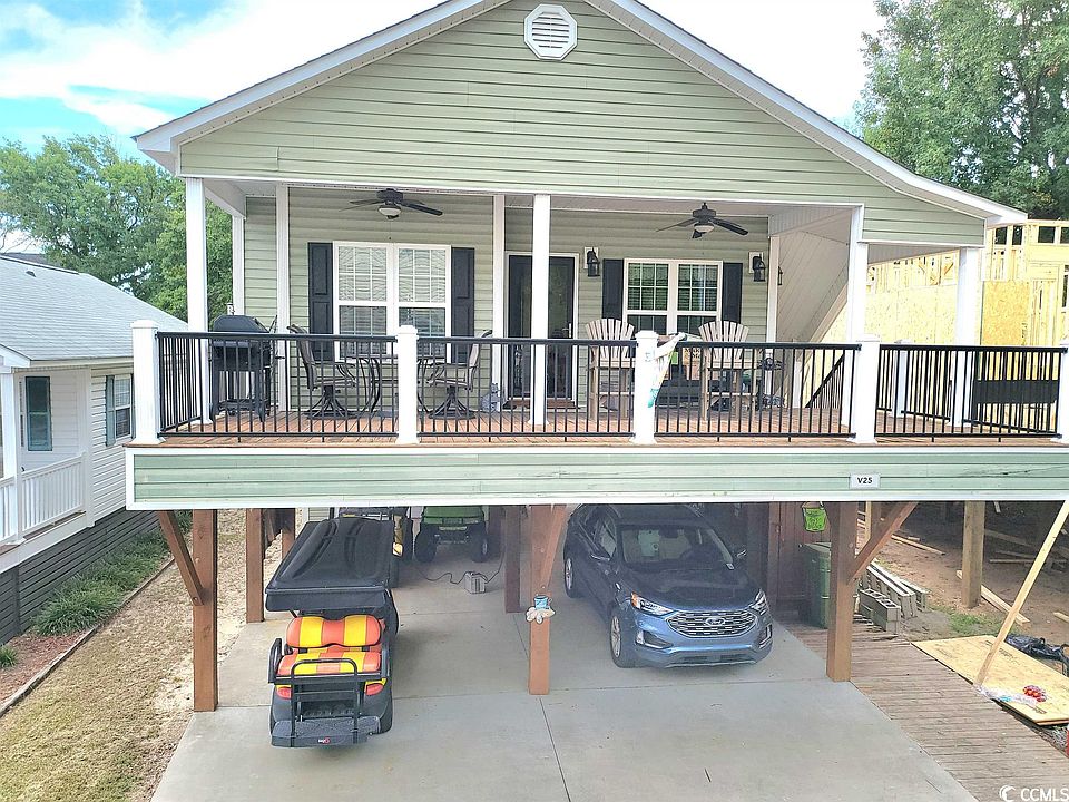 Beautiful 3 bedroom, 2 bath raised beach house in the award winning Ocean Lakes Family Campground. Sleeper sofa and storage ottoman in living room. Pull down table in the outdoor space. Golf cart included with the right offer! extra refrigerator in garage stays! Great rental opportunity or your own home away from home! Plenty of outdoor space for parking and entertaining. Make your dreams of owning a house at the beach come true!