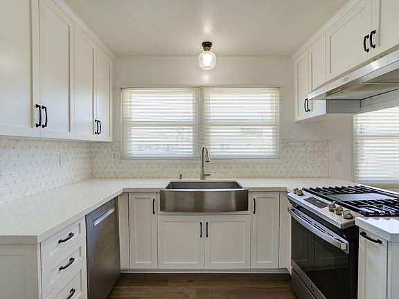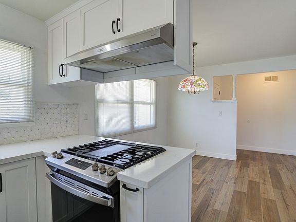 Just what you've been waiting for a single-story upgraded home to move right into. Just recently remodeled kitchen with new stainless steel appliances, dishwasher, cooktop/fan, farmers sink with spray faucet. Wooden-like flooring throughout, spacious living room with popular brick fireplace & ceiling fan. Freshly painted and newer window coverings. Each bedroom has a ceiling fan with remotes. A private yard with block wall fencing, a little larger lot due to being on the cul-de-sac. The master bedroom only has a split air conditioner. A large garage can accommodate all your treasures. Newer strapped water heater inside.