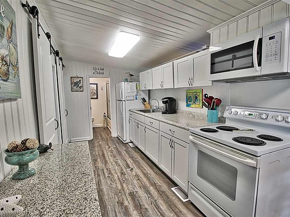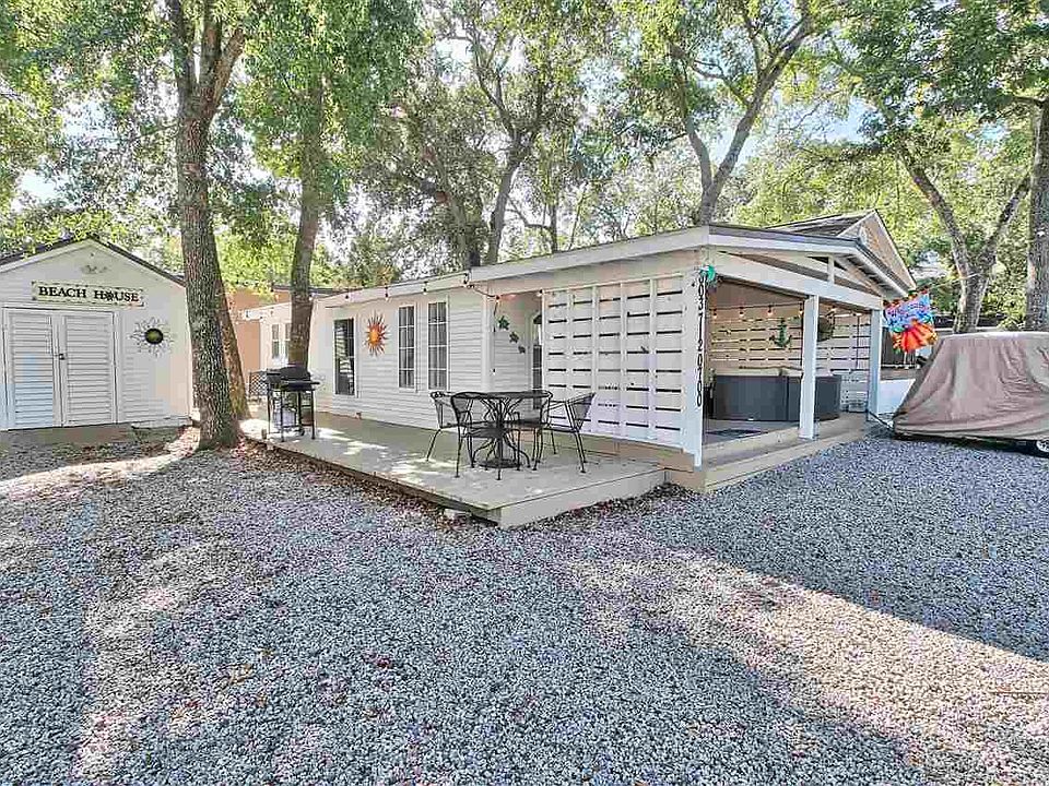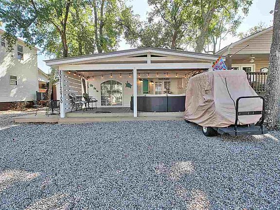 Welcome to this adorable property located within the gates of the award winning Ocean Lakes. You are sure to love the location here and over sized lot centrally located close to everything. Great shade and plenty of parking too. The interior has been updated and features vinyl flooring. The home has a metal roof which was installed in 2018 and the central ac was replaced in 2017. The 11 x 20 covered porch is great for entertaining and includes a large couch and included out side TV. There is a large amount of side decking and also an area around the back side of property for you personal use. You will also find included a 10 x 12 storage shed for all of your beach belongings. Sure not to last long. Come and view before it is too late. Are you familiar with Ocean Lakes? Ocean Lakes is a 300-acre oceanfront complex with 24-hour security. You are sure to love all of the amenities that Ocean Lakes has to offer. Some of the amenities included are an indoor and outdoor swimming pool, water park with slides and lazy river, splash zones, basketball courts, volleyball, shuffleboard, horseshoes, and much much more. Short term rental is allowed in Ocean Lakes. Please do not miss this property. View today. Square footage is approximate and not guaranteed. Buyer is responsible for verification.