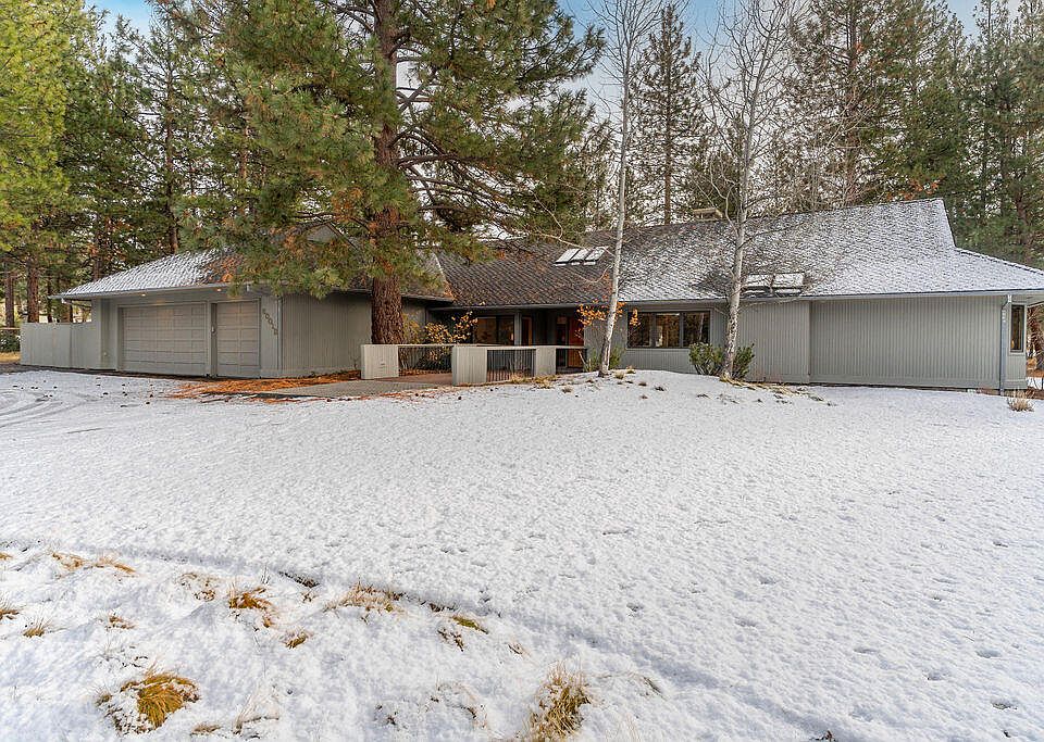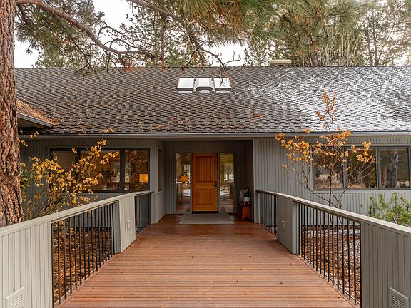 Timeless SINGLE LEVEL home situated on a private 2.37 acre lot in SE Bend's coveted Woodside Ranch! Built by highly-acclaimed Sun Forest Construction and designed by Steven Van Sant, this 4 BR home features a thoughtful, open floorplan and backs to the stunning Deschutes National Forest setting. Charming Living Rm w/wood burn fireplace, vaulted ceilings and light-filled windows take in the tranquil forest views. Chef's kitchen offers solid surface countertops, new stainless appliances, ample cabinetry and opens to a delightful Family Rm w/cozy wood stove and built-in workspace. Spacious Formal Dining Rm. Primary Suite w/direct access out to back deck and hot tub area, walk-in closet, dual vanity and tiled shower. 2 additional BR/full BA+ 4th BR currently being used as home office. New carpet, paint and LVP flooring. Expansive deck ideal for entertaining and relaxing overlooking the Ponderosa Pines and High Desert landscape. Fenced dog run. Oversized 3 car garage for all your Bend gear.