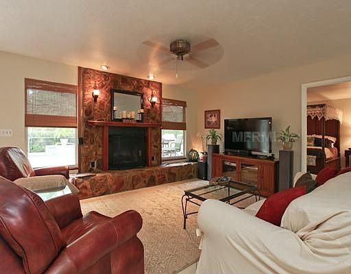 An unparalleled park like location is the hallmark of this treasure. The entrance is a wonderful segue to the gracious and inviting spaces. just beyond is the grand, sun-filled kitchen and great room with a wood burning fireplace and French doors showcasing nature's formidable beauty and the tranquil sun glistening waters poolside. Providing 4 well appointed bedrooms and grand bonus room, the roomy interior features a cozy artist's studio-den off of the great room, a gracious dining room overlooking the scenic grounds, a fully equipped kitchen and recently remodeled that is a chef's delight, granite countertops, solid wood cabinets, and stainless steel appliances. In addition some of the recent upgrades include siding, windows, roof, garage doors, pool, deck, pool cage, tile carpet, wood flooring, dual zoned air conditioning and newer front doors. The home on a magnificent 1 acre plus estate lot full of nature's evergreens, is the centerpiece reflecting an architectural and interior design that supports relaxed Florida country living. It is infused with the beauty and spirit of Old Florida.