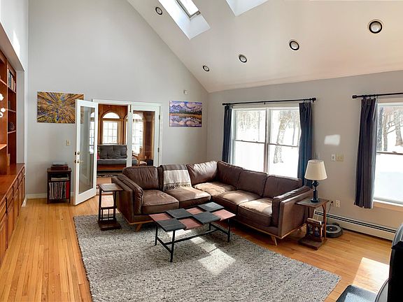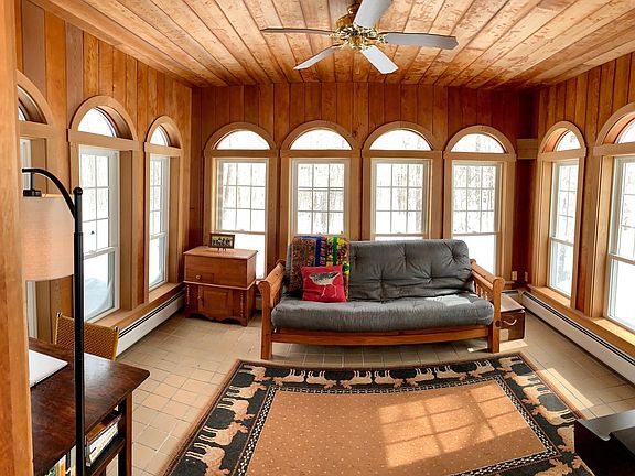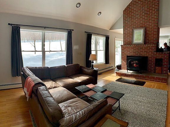 This home next to the 9th Fairway at the Sugarloaf Golf Course features vaulted ceilings with skylights and a wood burning stove in the living room, plus a hot tub on the deck.