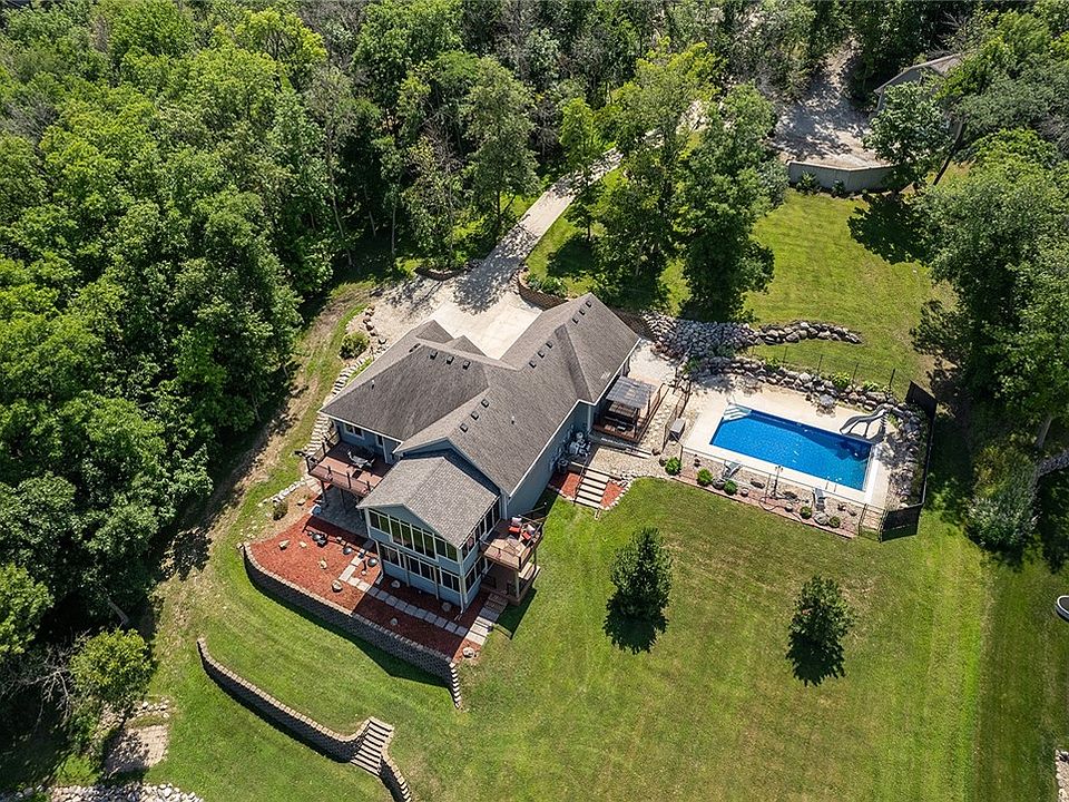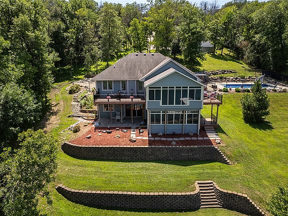 Amazing Lake Panorama waterfront home is situated on 2 lots (1.6 acres) & has everything you could want! A walkout ranch features an inground pool, hot tub, 4 season sunroom, 4 decks overlooking the 160 ft of shoreline! This custom home was built in 2007 & hosts 5 beds & 4 baths & is built to entertain. The main level has an open concept w/kitchen, dining room & living room. Off of the living room is the 22' X 16' four season sunroom showcasing the stunning lake views! Main level master suite, laundry room, 2 additional bedrooms & bath round out the main level. Head down to the lower walk out level & you will find 2 beds, 2 baths, storage, wet bar & a large entertainment area. The lower level also has an enclosed 3 seasons room providing additional outdoor living space. The yard is impeccably landscaped. There is even a covered patio w/ a rain gutter system. There are so many extras with this home! Be sure to check out the video: https://youtu.be/GyR5XOiyY8o. All information obtained from seller and public records.