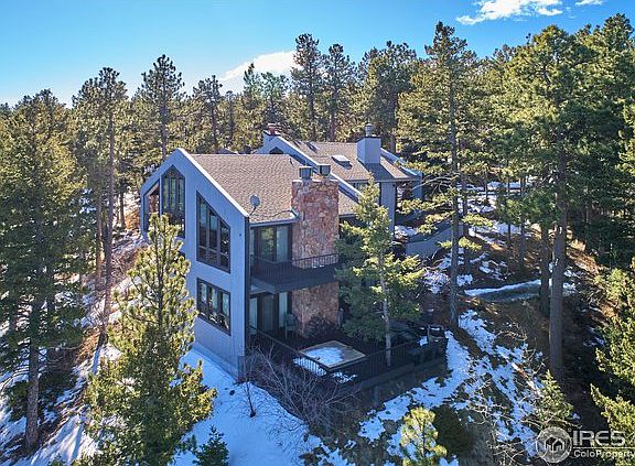 Flagstaff sanctuary for the whole family! Property includes buildable lot at 5988 Flagstaff. Architect designed to fit the private acreage just above Boulder. The home has wonderful mountain views from most windows and from the multiple decks. The home was custom built for the current owner with classic fireplace. Carriage house with 2-car garage and 594 sqft. studio above. Additional 3-car garage and sweeping asphalt driveway. Whole house generator is included.