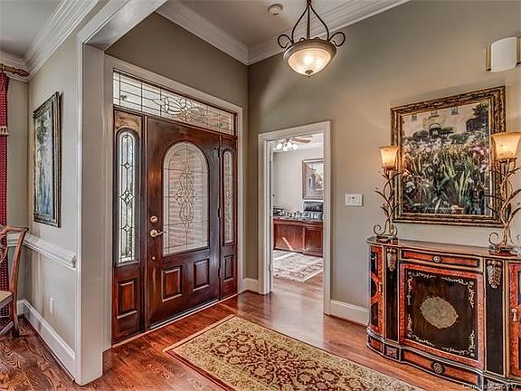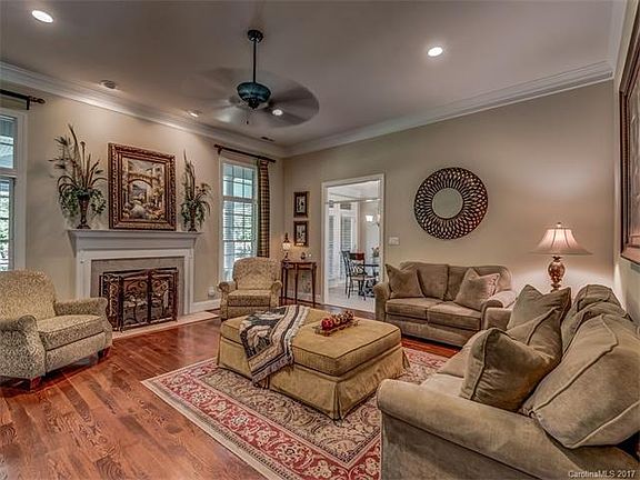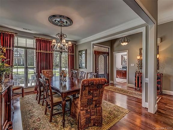 New Price! Gorgeous home in Golf Community! Set by the 9th tee box, this is a true custom home from its beautiful front door & sidelights to the gleaming hardwood floors, gracious living room, transom doorways, spacious kitchen to the incredible covered patio with pillars & year-round view of the golf course! SS Kitchen appls included, Energy Star, wall convection oven, beveled edge Corian Counter tops. Huge bonus room/suite up with private bathroom. Great location Union Cnty Schools & taxes!
