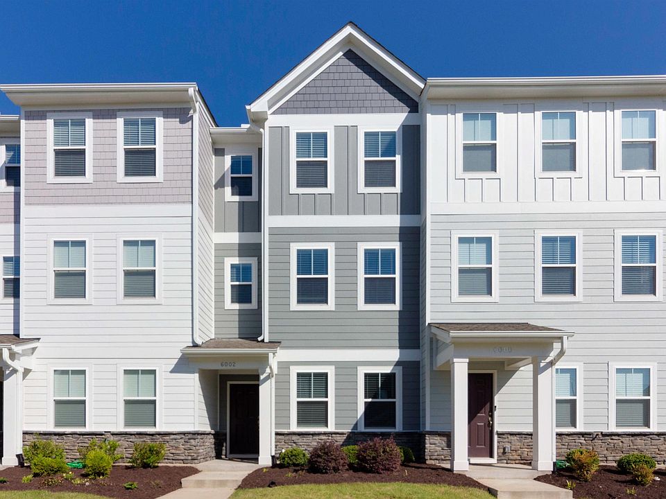 Impeccable location available in 5401 North! 1st level includes guest suite, full bath, 1 car garage with tons of extra space! Living and dining areas located on 2nd floor, Includes already mounted flat screen TV. Kitchen boasts gas cooking and granite countertops with oversized island. Third floor features the oversized master suite and additional guest room, along with laundry room complete with washer & dryer. 5401 North has all the amenities you need including a fitness facility, playground & clubhouse with a community pool. Walking distance to Wake Tech, local brewery, coffee shop, Pet groomer, SECU & more!
