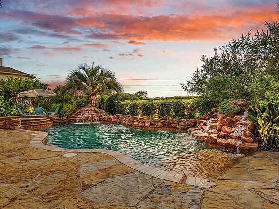 Don\'t Miss This One!! Stunning executive estate on a premium cul-de-sac street in the Pinelakes Oakmoss Village section of the master-planned community of Windrose. Meticulously landscaped front yard w/ a lake view across the street that has catch & release fishing. The backyard is an oasis w/ a covered patio, beach entry pool/spa w/ a fire pit built into the rock waterfall, professional landscaping w/ walkways that make this huge yard feel like a park, & to top it all off there are no back neighbors & views of the golf course. The outdoor space is amazing, but wait until you see inside! Dramatic entry w/ sweeping staircase, soaring ceilings & beautiful crown moulding. Master retreat is down & 4 bedrooms up w/ kids study space that leads to the game room. 3 car attached garage w/ epoxy coating & new roof 2015. Access to wonderful Windrose amenities, as well as top ranked schools, & close to shopping, dining & entertainment. Not located in a flood zone. Come take a look at this beauty!!