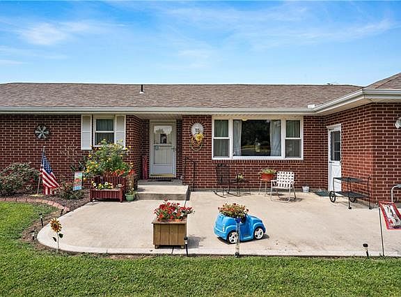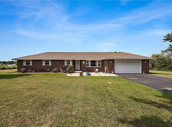 This ranch home sits on a beautiful 1.5 acre lot in Trimble Missouri, has 3 bedrooms, 2.5 bathrooms and a 2 car garage. Close to Smithville Lake, Only about 15 minutes from KCI. The driveway is asphalt with a turnaround. The kitchen has beautiful oak cabinets, a breakfast nook and formal dining room, living room and front foyer for gatherings with family and friends. You can enjoy the natural gas fireplace in the living area on cool fall or winter days. All bedrooms have lots of natural lighting, ceiling fans and good sized closets. The laundry room has lots of cabinet space above and a large pantry sized cabinet as well for storage. It also has a covered back patio, which has an amazing view of the acreage, perfect for sitting out on to enjoy some fresh air with your morning cup of coffee. There is a 30 x 50 outbuilding with a concrete floor on the property for all your lawn care supplies, mower, tractor, extra cars, etc. All appliances stay with the home. Don't miss out on this country living on highway 169.