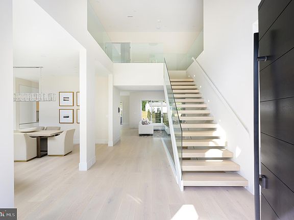 Nearly one mile from downtown Bethesda and comfortably nestled on one of the area’s most notable streets, 6003 Bradley Boulevard exudes contemporary sophistication in an optimal location. On the main level, which features ten-foot ceilings, effortless flow is facilitated by open sightlines stemming from the open concept layout. Living and dining rooms occupy one large space, allowing for the utmost in entertaining flexibility. Adhering to the demands of modern lifestyles, the same applies to the kitchen, family room, and breakfast area. As the heart of the home, the kitchen is a showstopper. A blend of matte White Acrylic, natural wood, and top-end imported German/Italian hardware evokes a sophisticated European ambiance within the space, enhanced with state-of-the-art appliances by SubZero and Wolf. A full bedroom suite for multigenerational flexibility and a mudroom lined with custom cabinets connecting to the attached garage complete the main level. Upstairs are four ample bedrooms, each featuring ensuite baths meticulously designed and clad in European tile. Amongst them is the lavish primary suite, accessed through double doors and flooded with natural light from windows on three walls. The accompanying primary bath boasts all the expected accouterments – twin floating vanities, heated floors, and a smart shower with digital controls for pinpoint personalization. A convenient laundry room completes the upper level. Descending the main staircase reveals a fully-finished lower level. The recreation area spans the entire depth of the home, establishing a commodious, flexible space for gatherings on all scales. A custom-crafted wet bar, complete with a Dekton countertop and backsplash and integrated LED lighting, serves as the focal point. Additional storage space and a sixth bedroom with an accompanying full bath add yet another layer of practicality. The outdoor areas are generous for a home effectively situated in downtown Bethesda. Both a patio lined in large-format European tile and a large custom-milled African Sapele wood deck connect to the fully fenced grassy lot. A multi-zoned outdoor lighting package is part of a larger smart home system that encompasses lighting, smart locks, Sonos, security cameras, HVAC, and smart appliances, all via a smartphone application. High-capacity, energy-efficient mechanicals complete the package.