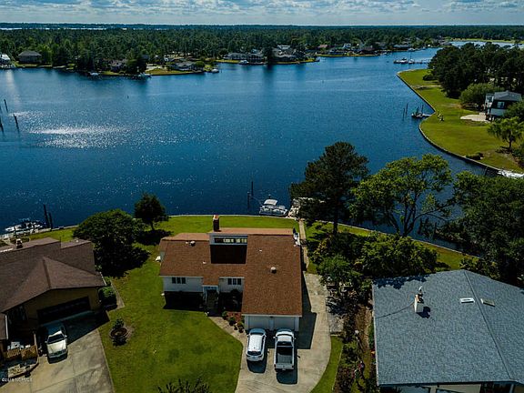 This incredible waterfront home is located in a gated community, and has Amazing Views down the Inner Harbour. The home provides breath taking views from the glass waterfront windows in the living room and Carolina Sun Room.. The waterfront has mooring poles that will accomodate a 60 ft boat in deep water (8-10 ft) The dock system will accomodate 2 or more boats. This home is only minutes from the Neuse River and the ICW! The property has been substantially renovated and updated over the last 2 years. It is not in flood plain and had no water damage during Florence. The seller has flood insurance anyway that may be transferred if the buyer wishes. See this unique waterfront property today. The pictures tell the story about this unique waterfront home! Don't miss out!