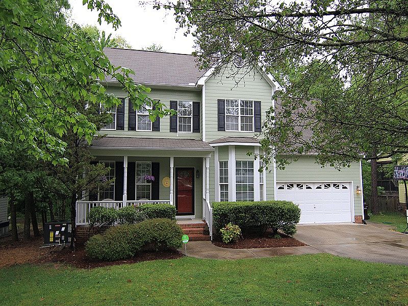 Wood Lake, Well Maintained 4 Bed Home with a Lovely rocking-chair front porch! 3 level home that backs to a beautiful, wooded yard with over 1 mile of walking trails. This home has 4 large bedrooms with a wonderful 3rd floor bonus, open living floor plan with separate office. Screened porch allows for peaceful nights overlooking your beautiful fish pond and serene backyard. Dog park, community pool and clubhouse, all in a convenient location close to I-40, Southpoint, RTP and downtown Durham.