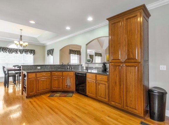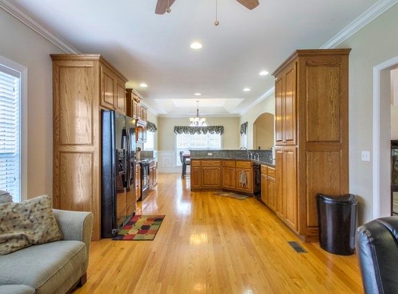 All brick, turnkey 3 bed 2 bath featuring an open floor plan with hardwoods throughout the main living spaces, vaulted ceilings and built-ins, open ki