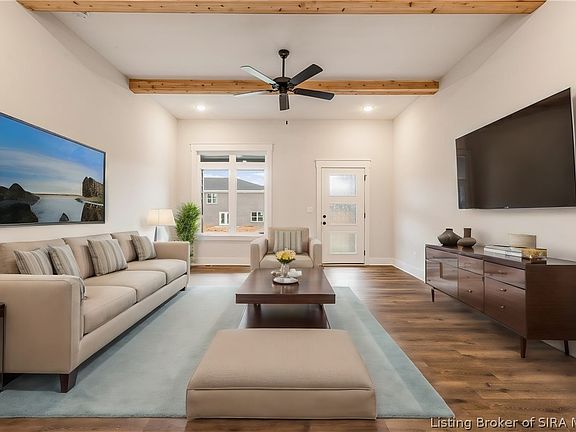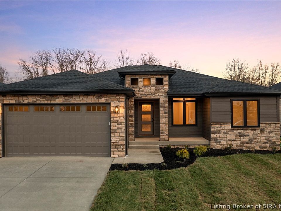 QUALITY built by ASB, this "ALLEN Plan" has a BIG LOT! 10 ft smooth ceilings in the great room and kitchen, LVP "life proof" floors, LARGE kitchen w/ GRANITE, pantry, ISLAND, breakfast bar, and WIDE open great for entertaining, this plan is a crowd favorite and just minutes to River Ridge/hwy 62 and all its amenities! The Owners suite is a great size and offers a private en suite bath featuring a beautiful custom TILE shower, double vanities, and HUGE walk in closet! Laundry area is a great size and stylish cubby built in w/ hooks, great for storage. This one also offers a FINISHED BASEMENT that has the 4th bedroom, full bath, family room, and tons of storage space! This is an ENERGY SMART RATED home and builder to provide RWC WARRANTY at closing! Don't miss this one! Pictures are of a different home, but home will have similar finishes.*Out of district transportation is now available in Limestone Creek Subdivision from Silver Creek School District.*