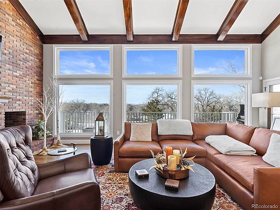 Tucked within the tranquil Orchard Meadows neighborhood is a completely renovated ranch style home that backs to the wondrous Highline Canal, offering sweeping mountain views from nearly every room. Upon entry you will immediately take note of the soaring ceilings accented with dark oak exposed beams and an open floor plan ideal for entertaining. The gourmet kitchen is complete with stainless steel appliances, large center island with breakfast bar and stunning Quartzite countertops that are perfectly paired with a gleaming marble tiled backsplash. The kitchen features a spacious breakfast nook and lots of cabinet storage. The great room offers expansive Renewal Anderson Windows, exposed brick fireplace and access to the west facing deck. Enjoy hosting friends & family in the indoor or outdoor living spaces. Retreat to the beloved main floor primary suite, where you can unwind next to a beautifully tiled fireplace or take in the mountain views from the deck off the primary bedroom. The five-piece primary bath includes a steam shower, soaking tub, dual sinks, and large walk-in closet. The walkout basement offers additional entertaining spaces with a cozy family room with dual sided fireplace, wet bar, lower patio access and more mountain views! In addition to the family room, you can find an exercise room, a bonus room currently being used as an office, 2 bedrooms with walk-in closets and a gorgeous ¾ bathroom with dual sinks, mosaic tile floors and subway tiled walk-in shower. No detail was overlooked in the updating of this home. You will love everything about this home from the subtle gold hardware throughout to the tastefully refinished hardwood floors. Desirable 3 car garage with epoxy flooring and additional storage is a bonus. Enjoy idyllic and peaceful living just minutes away from today’s conveniences. And on top of it all, the low maintenance community allows you to never worry about shoveling again!