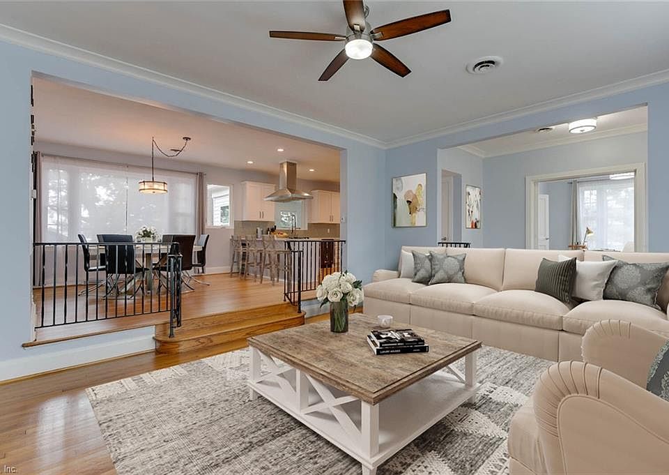 Gorgeously remodeled sprawling brick home in desirable Riverpoint! Combining the best of classic Norfolk construction w/ brand-new luxury updates throughout- w/ a beautiful view of the Lafayette River! Situated on a half-acre waterfront lot, this home boasts countless high-end updates. From the moment you enter the home, you're greeted w/ tons of natural light from north & south facing picture windows. Gleaming, refinished hardwood floors welcome you in the open floorplan. Chef's kitchen features shaker cabinets, 36" farmhouse sink, quartz countertops w/ 4-seat bar, & stainless-steel appliances, including bonus wine fridge! Dual primary suites are ideal for guests or multi-gen living. Bathroom updates throughout, including marble flooring & countertops. Separate office w/ pocket doors & half bath. System updates include newer HVAC, new windows, & more. Imagine evenings in the sunroom as you watch the sunset over the river. Some photos are virtually staged.
