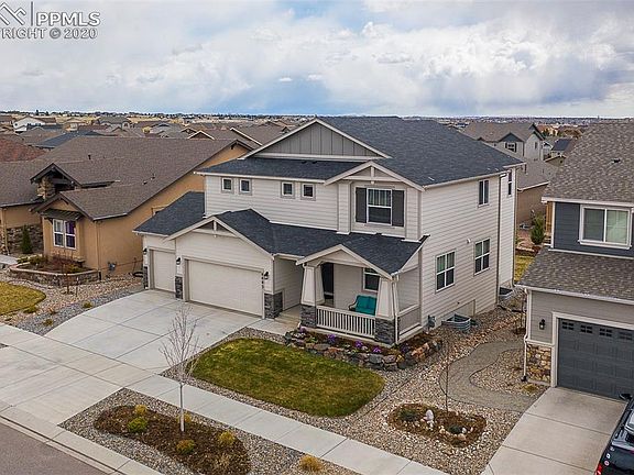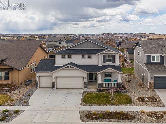Absolutely Stunning!! Located in the highly sought after Wolf Ranch community, this gorgeous 7B/4 Ba home shows like a brand new model. Thoughtfully designed and loaded with upgrades, this immaculate home has it all--starting with rich hardwood floors throughout the entire main level. Beautiful white cabinets, a subtle back splash, quartz counter tops, stainless appliances and a fabulous farmhouse sink give this monochromatic Kitchen an understated elegance and the walk-in pantry is a real treat! The breakfast nook off the kitchen is adorned with a lovely new chandelier and open to the spacious Great Room. The main focal point in this inviting space is the gas fireplace featuring a custom herringbone stone surround that is simply exquisite! The main level also has a formal Dining Room, Office/Flex Room, Half Bath and Mudroom with built-ins. Upstairs is the relaxing Master Retreat (hello mountain views) with attached five piece en-suite and huge walk-in closet! The upper level also has four Secondary Bedrooms, a full bath and a dreamy Laundry room. The fully finished expansive Lower Level has 9ft ceilings, two additional Bedrooms (one with a walk-in closet), another full bath and a giant Family/Rec Room complete with another custom gas fireplace! Other highlights of this outstanding home: Trex deck with mountain views, professional landscaping, gas line to grill, pre-wired surround sound and home security system, central air conditioning, three car garage and much more! WR is such a welcoming community and has so much to offer. A rec center with pool, parks, walking trails, a lake summer concerts series at Gateway Park. Award winning D20 schools--*2020/2021+ NEW SCHOOL ZONING...Ranch Creek Elementary, Chinook Trail Middle and Pine Creek HS. Look no further...Welcome Home!