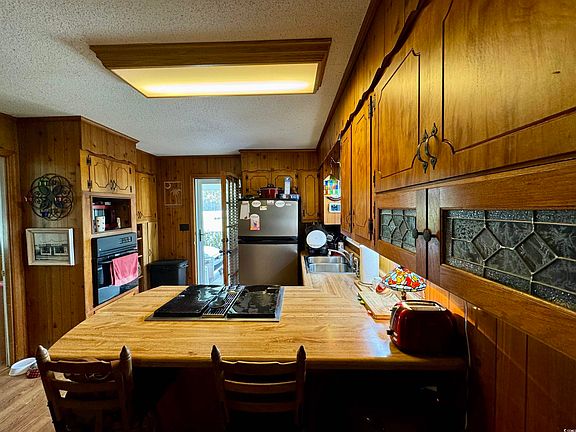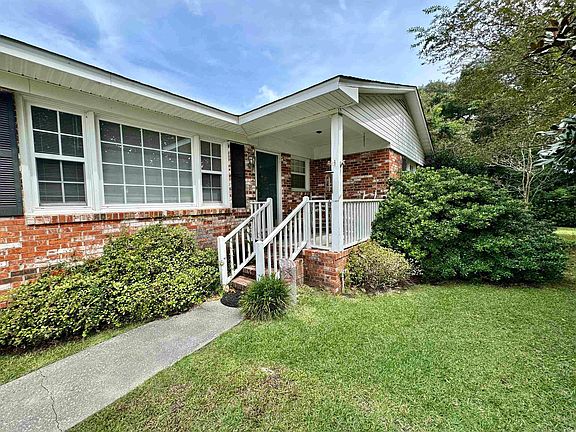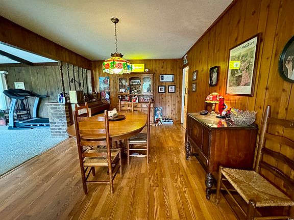 This charming brick ranch is on Highmarket Street, near 8 Oaks Park. Off the front hall is a formal living room, which is currently used as a home office. The living room opens to a dining room and is adjacent to the eat-in kitchen. A later addition, a large wood-paneled living room extends off the back of the house and is flanked by a large fire place. There are hardwood floors throughout much of the house, including the hallway. There are three bedrooms - two of which share a hall bath. The primary bedroom has its own bathroom. Additionally, the home has a 1-bay carport and a large patio off the back porch, which has an outdoor fireplace.