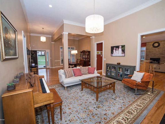 Welcome home to 6004 John Moser Way! This five bedroom (four on the main level!), four full bath ranch with finished walkout lower level is the home you've been looking for! A beautifully designed floorplan offering nearly 4200 finished square, with soaring 14-20 ft ceilings on the main level, feet awaits you! This home is located in the highly sought after Moser Farms community in Oldham County, districted for North Oldham Schools, near restaurants and shopping, very close access to the community YMCA, and conveniently accessible to major interstates. The neighborhood offers a new playset and the option of access to the neighboring Glen Oaks pool! The school bus even picks up right at the front yard, what a plus if school bus transportation is needed by the lucky new homeowner!(cont) The main level of the home boasts plantation shutters throughout. Through much of the first level, newly refinished hardwood flooring (2017) accentuates the space! Brand new (Feb 2018) granite counter tops are a lovely feature of the kitchen. The floor plan provides for an open flow between the Family Room and the Formal Dining Area! The kitchen is expansive and comfortable ââ truly feels like home! ââ with the large amount of counter and cabinet space, the spacious island which offers additional barstool seating space, the roomy breakfast area (large enough for a full sized table!), plus open to a cozy hearth room!The master suite is a luxurious space complete with a fireplace and double trey ceiling; the master bath offers a jetted tub plus a spacious closet with custom designed storage solutions! The main level of the home offers three additional bedrooms, each with bathroom access. One additional bedroom is en suite to a full bath that also offers access to the foyer (serving as a guest powder room!). The other two main level guest bedrooms are serviced by a shared Jack and Jill bath. The finished walkout lower level offers more recreational/entertaining space, plus a full bath, plus an additional bedroom! The lower level provides three storage rooms! This home offers so many unique features, including the double sided fireplace that gives charismatic ambience, especially to the screened-in porch! Additionally, this property is equipped with numerous outdoor living features including a two-tiered rear deck (recently refinished) and patio area which is outfitted with a gas hook-up for your grill. The yard is stunningly landscaped with eye-catching perennials that bloom strategically throughout the season plus additional gardening beds for your enjoyment! The yard is equipped with an invisible fence ââ perfect for pets! Note: additional outdoor features such as stand alone propane heater on porch, outdoor playset and hot tub can potentially be purchased from seller but are not included in the list price. The rear yard is perfectly suited for this home ââ it offers a large amount of level yard ââ a great place to enjoy the outdoors and entertain! Please note: Stand alone propane heater on porch/outdoor playset/hot tub/pool table/basement bar are negotiable, but not included in the list price. The kitchen and basement refrigerator convey for your move-in ready convenience! The washer and dryer remain for the buyer's convenience. The home is equipped with a security system. Call today for to schedule your showing for this lovely home!