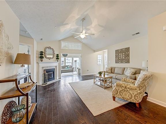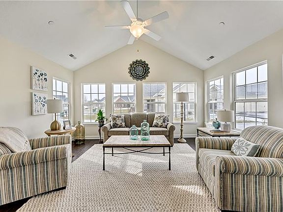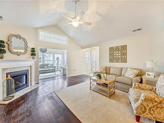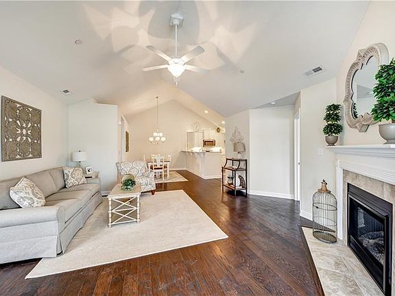 Beautiful open floor plan. Entry features ceramic tile. Hardwood floors throughout living room, dining room, kitchen, and veranda. Ceiling fans included in both bedrooms, living room, and veranda. Upgraded kitchen featuring maple cabinets, granite counter tops, stainless steel appliances and under cabinet lighting. Living room features gas fireplace with ceramic surround. Abbey model home.