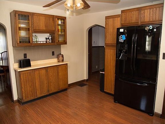 Adorable Cape with Huge Lot; Huge 2 Car Detached Garage ; Stone FP in LR; Big Rooms; HW Floors; Wide Open Kitchen; Lots of Closet and Storage Space; Finished GR in Basement with Laundry, Storage, Full Bath, room for games and Entertaining; Walks out to Fenced in Patio Area; Driveway large enough to park Many Many Cars and Turn around; This House is charming; Covered back porch Off of Kitchen; House Hidden from the Road; Walk through yard to T and down two houses and there is a T stop/pickup; Shed also included