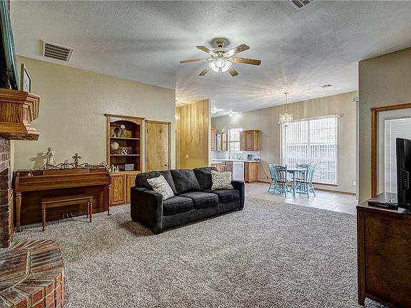 Under Contract awaiting last signature.This house is ready to BUY! Freshly painted inside & out...neutral is the name of the game! Carpet was installed 11/14/18...new car...strike that...new house smell! Edited, packed, very few things hanging on the wall for minimum 'holes.' Well maintained since they have owned it and it shows. Newer Kenmore appliances in the kitchen & they stay: refrigerator, gas stove, dishwasher, microwave. TV & mount in sec. bed stays. Master bed is a retreat w/sitting area, walkin closet w/room to share, dbl vanities in bath, whirlpool tub & sep shower. Ceiling fans thruout! Sec beds have walkin closets & vaulted ceilings for a feeling of spaciousness! Two builtins in the living room along w/a closet & a gas fireplace=warm & inviting! Int. laundry has a window, so you don't feel closed in. Very little hallways, the sq.ft. is in the rooms! Cvd back patio overlooks lg backyard complete w/a firepit...just in time for these fall evenings! Gutters all around.