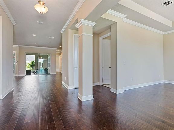 This Creekbank is a homebuyer's dream come true! The charming front porch is the ideal spot to enjoy a cup of coffee and waive as your neighbors stroll by. The gorgeous interior of this home offers white kitchen cabinetry, granite countertops and wood flooring. The spacious interior and open-concept plan is made for entertaining guests and cooking family dinners. Enjoy the sunset on your large covered lanai and reflect on all the reason why Encore is the place you should call home! Take a walk over to "Oasis"- Encore's 5,000 sq ft. Clubhouse, equipped with resort style pool, hot tub, pickle ball courts, bacee ball, fire places, fitness facilities, and so much more.