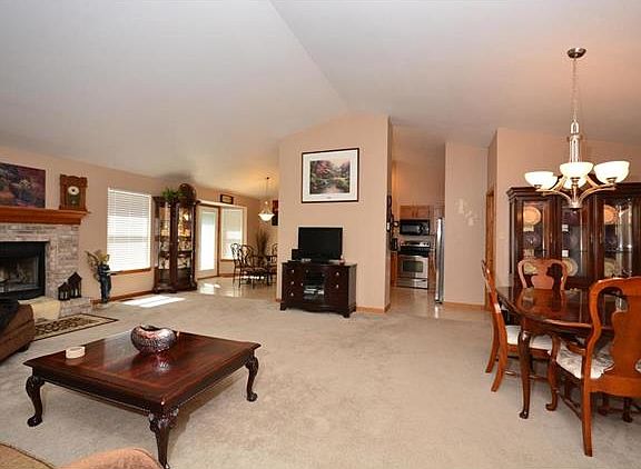 Back on Market at no fault of the seller. Move in ready! This 3 bed 2 bath home is located in the sought after Timber Ridge Subdivision! Enter into the spacious great room with vaulted ceilings and gas fire place. The eat in kitchen offers a center Island, Large pantry and bay window. The Full walkout basement is partially finished. It has been framed, recessed lighting installed, and doors installed, waiting for you to put your own personal touch on, plenty of storage. Beautiful landscaping in the front yard and the backyard backs to trees for privacy and great for relaxing. Don't miss out on this one!!!