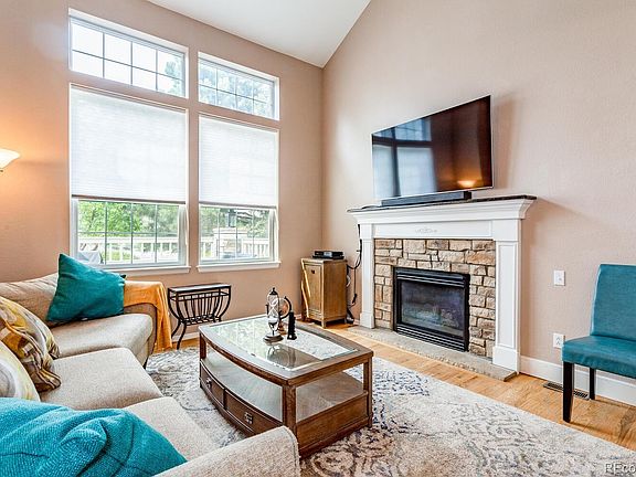 This Highlands Ranch, rare RANCH STYLE, SMART town home with upstairs loft area!!! This previous Writer model home is located at the end of this cluster of homes, with additional off street and on street parking. The main flooring is real oak hardwood. Beautiful stone fireplace with custom mantel in the 2 story ceiling gives this family room a cozy, but open feel and is flooded with natural light from the recently installed windows. The adjoining dining room is also adjacent to kitchen but open enough for entertaining or cozy enough for romantic dinners. The Large kitchen has an eating space, granite counters and newer stainless steel appliances, plus it opens to the enclosed patio, great for those fall evenings. The large, secluded main floor primary bedroom features dual closets and an updated bathroom with skylight, spa shower, and heated floors. The main floor guest room has a built-in Murphy Bed and walk-in closet with custom shelving and tons of natural light. The cozy upstairs loft area is spacious and perfect for a home office, complete with wet bar and powder room. The professionally finished basement features the third bedroom, a 3/4 bath with a large family room, kitchenette, and a play/craft room plus storage. This home has a new heating and air conditioning unit and it's move-in ready!!! Walking distance to tons of paths, the Highlands Ranch Hound Hill Dog Park, Cheese Ranch open space, a variety of fields, shopping, restaurants, and very conveniently located to several major highways, roads and public transportation. Showings start Sat. Sept. 19th, 2020.
