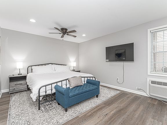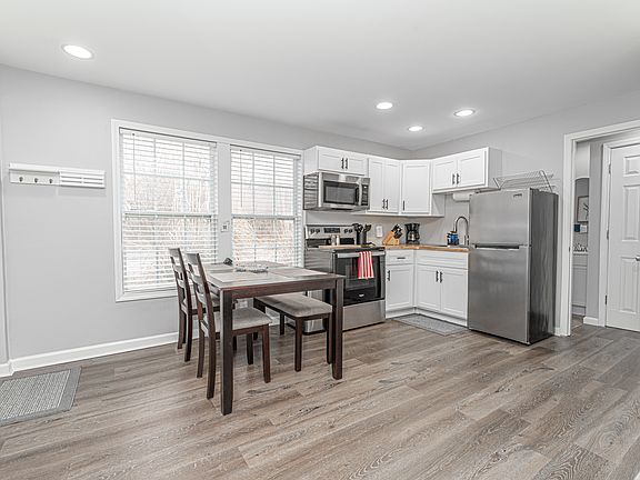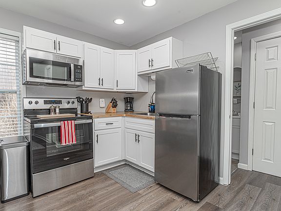Welcome to the Royale Room, a fully furnished and private studio apartment available for monthly rental in the heart of historic Kimmswick - a walkable, boutique river town with many shops, restaurants and festivals. This studio apartment offers a covered porch with seating at your private entrance, just steps from the parking area. This unit boasts a full kitchen with stainless appliances and a full size range with an over the range microwave. The dining area has a full sized table with seating for four and plenty of room to move around. The bedroom area features a large, soft rug and a comfortable king-sized bed with Casper luxury mattress. A 50" LED Google TV is mounted on the wall with a full swivel mount so you can watch from anywhere in the apartment. Hold all of your clothes and items in the large walk-in closet and extra storage inside of the bench seat. The bathroom is large and bright and features a walk-in, full sized shower. There is a laundry room on site with two washers and dryers and a utility sink that are free for resident use. Enjoy the fire pit and grilling area this fall! You'll be very comfortable staying in this studio that's fit for a king (or queen)!