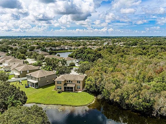 Gorgeous expansive 2 story home with MASTER BEDROOM/BATH on the main level. 20 ft Vaulted ceiling open to the 2nd story of the home. A grand entrance that leads you to the large living space and windows that provide tons of natural light. There is plenty of room in this home with 5 bedrooms, 3 1/2 baths. Large corner lot on a cul de sac provides ample parking and privacy to a preserved area and water views out the back complete this large lot. Sit on the lanai and enjoy a cup of coffee in the morning looking out over the water and enjoying the sounds of nature from the preserve on one side. This home is huge and offers plenty of room as the inviting grand foyer welcomes you. The seller has installed new flooring, paint and other updates to welcome the new owners. You will love this home and make it yours.