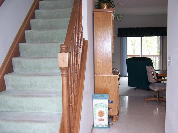Owners took property ''temporarily off of market'' for six months( in winter when in Florida!Move in ready condo! Deck/Balcony(newly stained) has wooded view. It feels like you are living up in the trees. Both bedrooms are large. The layout is open and airy. The decor is neutral. Ceramic tile entry & nice powder room off of the side hall. The full bath upstairs has a door that connects to one of the bedrooms and is conveniently located on the hall between both bedrooms. There is a nice vanity are as well. The full basement is spacious and is waiting to be finished. The furnace motor was replaced in 2009 and a surge protector was added! There is a detached one C garage that can be sold for an additional $5,200.00(not next to unit (separate parcel) if new owner wants to have a garag
