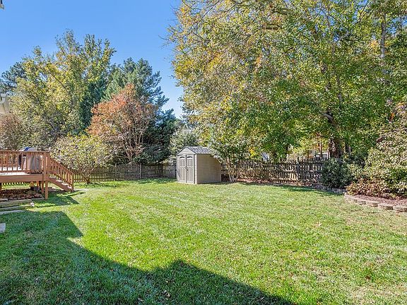Click Virtual Tour for more! Home Sweet Home! This lovely 4 bedroom home is located in the great subdivision of Dominon Park in North Raleigh. The exterior is laced with beautiful landscaping which includes not only a storage shed but a fenced in yard and an oversized deck. There are beautiful hardwood floors throughout and LPV in the upstairs bathrooms - No carpet! The primary bathroom has been recently updated with a dual granite vanity, tub and walk in shower. The kitchen offers tons of natural light, granite counter tops, spacious cabinets, two pantries, and more. This home offers a bonus room, large first floor laundry room, large downstairs home office, and plenty of storage space. Washer, Dryer, & Refrigerator included. Roof was replaced in 2020. The neighborhood includes a neighborhood pool, pickleball court/tennis court, and more. Only minutes from RTP, RDU, restaurants, shopping and more! Book your private tour today!