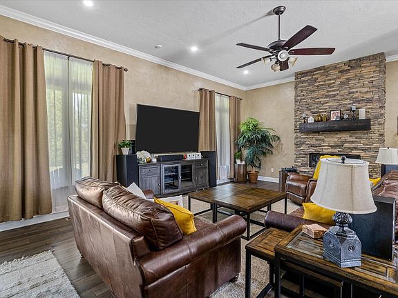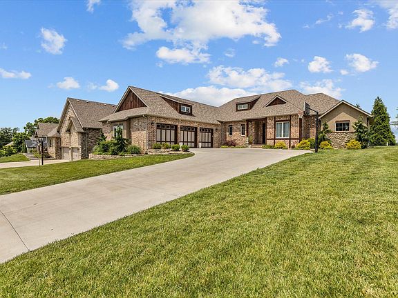 This beautiful 4 bedroom, 3 bath, 3 car garage home located in Nixa with Ozark schools. Upon arrival instantly take notice to the mature landscaping and curb appeal the brick and stone home offers with natural wood accents. Step inside to gorgeous wood floors, crown molding, and white trim that flow throughout the home. Oversized windows allow for natural light to brighten the entire interior. Enjoy evenings around the stone floor to ceiling fireplace in the main living area. A kitchen/dining combo makes entertaining effortless. Here you'll find custom dark cabinetry, granite countertops, stone backsplash, stainless appliances and a spacious center island with sink. Storage is plentiful in the walk-in pantry with built-in shelving. Just off of the dining combo, sliding doors lead you out to the covered back porch creating additional space for entertaining indoors or outdoors. No stone was left unturned in the master suite. Here you'll find trey ceilings, a soaker tub, his and her sinks, an additional vanity, tile shower and a large walk-in closet with custom built ins and drawers. Laundry is a breeze with wrap around cabinetry and counter space as well as a sink. This one of a kind home won't last long. Schedule your showing today!