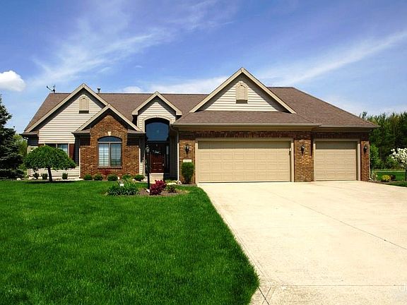 A LITTLE BIT COUNTRY Rare 3-bedroom ranch with BASEMENT in the exclusive neighborhood of Deer Track Estates! Nestled at the end of the cul-de-sac, this unique property sits on private 3/4 acre lot. Spacious living room opens to the cozy dining space located just off the kitchen-- this is perfect for large gatherings. 9' ceilings in the great room create a very open feel with lots of natural light. Cozy brick fireplace! Functional kitchen boasts ample cabinet space plus a see-through window to the living room. Durable hardwood floors extend throughout the foyer, kitchen, and dining space! Vaulted ceiling in the master bedroom PLUS an en-suite bath with double sink vanity, walk-in closet, stand up shower and separate jacuzzi tub. The basement is perfect for extra living and storage and includes a finished room with closet that is currently being used as an office. Plumbed for a future WET BAR! Enjoy the serene setting of the large backyard from the rear patio with maintenance-free, vinyl wrapped deck and 18' x 36' Treadway SALT-WATER swimming pool with automatic cover and NEW liner in 2014! Storage galore in the 3-car attached garage. Reverse osmosis water system. Kinetico water softener. Enjoy a quick 9-hole round at neighboring Deer Track Golf Course! This immaculate one-owner home was built by Windor Homes and is sure to impress even the most discerning buyer!