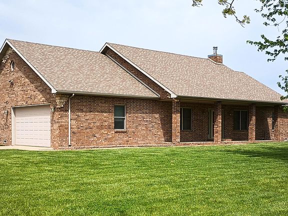 First time one the market! Custom all brick home on 10 acres with a shop. This 3 bed 2 bath home has an office large enough for a 4th bedroom. Home was stick built, all brick exterior. 2x6 construction, Marvin windows, custom solid oak cabinets, doors and trim throughout the home. Upon entering the home you will notice the spacious rooms with ceilings 9 feet tall through out the house. Solid oak hardwood in the living room and office. Living room has an all brick fireplace with a Country Flame wood burning insert that will crank out the heat. Utility bills are excellent with the yearly average of $149.09 a month. Large Master bedroom suite with his and her walk in closets. Interior doors are 36'' wide and wall outlets are raised off the ground for easier reach. Lots of storage throughout the home, including 9 closets, a kitchen pantry and more storage in the attic.Outside has a rocking chair front porch, and an amazing covered back porch with a 1/4 mile view. The 30x50 shop is built on a poured foundation, No cheap pole barn here. It features a full bathroom with shower, toilet, 2 sinks, and a washer and dryer hookup, and hot water. There is an additional room on the back of the shop that could be a spare bedroom, man cave, you name it. Shop also has a 30 x 12 lean to on the back side. Shop is fully wired including 220 hookup. The walls have built in wood shelving for additional storage. Flue vent pipe located in the center of the shop to hook up your stove of choice.Large yard and the pasture is cross fenced into 2 paddocks. Fire pit, swing set, raised garden beds and a livestock/loafing shed also included. Fencing is barbwire with electric ran inside. A wireless pet fence is included to let your pets run 6 of the acres.Reserve items: wood stove in shop, wood rack on back porch, refrigerator in kitchen.