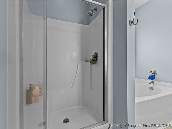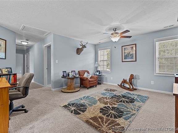 This beautifully maintained 2-story home, built in 2016, offers a layout with an owner’s suite and en-suite bathroom conveniently located on the first floor. Upstairs, you’ll find additional spacious bedrooms along with a versatile loft area that can serve as a playroom, home office, or cozy retreat. The fenced-in backyard is perfect for outdoor activities and includes a large storage building that has been wired for electricity, providing a great space for hobbies or additional storage. This home is conveniently located approximately 35 minutes from Fort Liberty.
