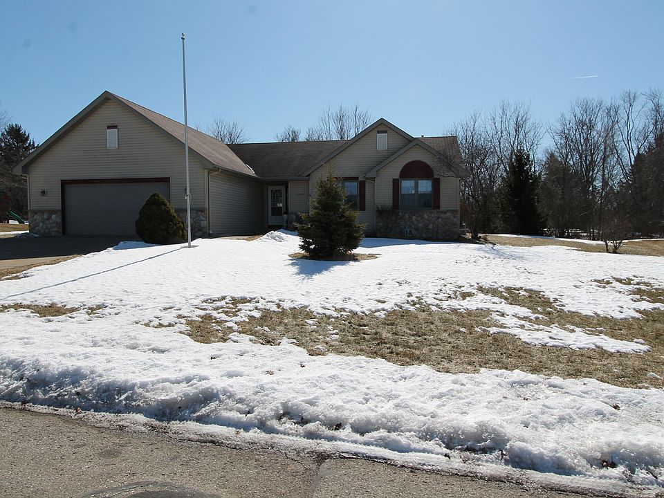 Open concept 3 bedroom 2 full bath ranch home with first floor laundry room. Enter the front door and view the great room with vaulted ceiling and fireplace with floor to ceiling stone. Open concept lets you enjoy the warmth of the wood burning insert while eating dinner. Kitchen features hickory cabinets. Enter the beautifully landscaped private backyard from dining room patio doors. Master bedroom includes a walk in closet and full bathroom. Custom built bar area makes the lower level an additional wonderful gathering space.