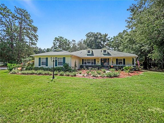 This impeccable, just updated custom built home sits just shy of 3 acres, boasting 1,899 square feet with 3 bedrooms and 2 bathrooms. Close your eyes as you imagine pulling into your new home. The pride of ownership sets in as you park in the driveway or pull into your 2 car garage and admire the charming exterior. Your peaceful front porch and clean curb appeal is complete with fresh paint, new light fixtures, irrigation, oak trees with mature and preserved landscaping-you can smell the fresh air! Visualize your family awaiting your presence as you walk through the double front doors into your raised grand foyer with jaw dropping cathedral ceilings throughout the home & incredible natural lighting! This home offers the desired split and open floor plan. On your left you have a large, open formal dining room perfect for hosting your thanksgiving feast. Or you can go straight and have a seat in the large living room. Both routes lead you to the recently remodeled oversized and extremely open chef's kitchen! If you like to cook and entertain, this home is for you! Updates include all new recessed lighting, energy efficient stainless steel appliances, countertops and backsplash. Complete w/ tray ceilings, custom cabinets, floating island, bar and breakfast nook. Kitchen overlooks the family room featuring a beautiful stone wood burning fireplace- just imagine the holidays coming up! 2 sets of french doors bring you to the lanai complementing new tile flooring and a new fan, with a view of your land and what could be your new pool, organic farm, and sustainable garden; the 2nd bathroom leads to the backyard so you can efficiently run in without tracking throughout the house- perfect for parties and yard work! Back inside, you have 2 bedrooms that have never been lived in! All bedrooms have new laminate floors, new blinds and new fans. On the right side of the home is the largest master suite you've ever seen... and guess what? It's yours! Almost 250 square feet of sanctuary you've earned! Who needs a 5 star hotel? 2 walk in closets, a built in entertainment center, shelves. Private access through your french doors bringing you to the lanai for tranquility. The master spa has just been COMPLETELY RENOVATED featuring BRAND NEW: walk-in double shower, mirrors, vanities, hardware, lighting, gray paint matching the bedroom as well as trendy wood plank tile. Both the garage and the interior, walk-in laundry room have built-in cabinets, a desk & pantry. Location Location Location, conveniently located on a Cul de sac minutes from the Suncoast Expressway & directly across from the scenic award-winning Hiking, Walking, Biking, Skating 41.3 mile Suncoast Trail. 45 minutes from the Tampa International Airport, down the street from all the new shopping and dining of Spring Hill, great schools and bordered by the exclusive Silverthorn Golf & Country Club-w/no thru traffic! Safe and lit up with street lights with the privacy you're looking for- that's the country living you deserve! AC was replaced in 2017, with transferable warranty and maintained semi-annually. The drainfield/septic and water heater are all brand new. Proudly resides the original owners.