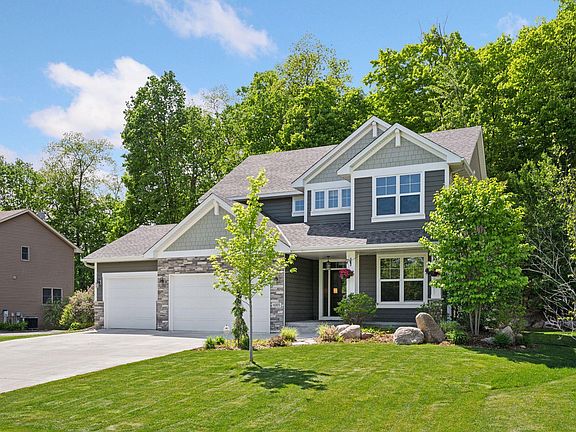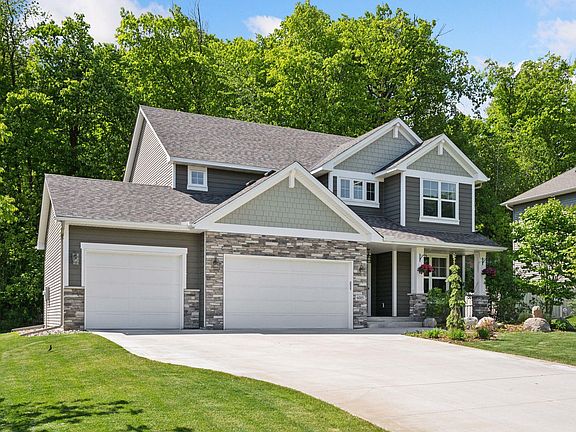 Beautiful custom home in Hurst Woods neighborhood. Home was built by Dingman Builder and features high end upgrades throughout. Main level features hickory plank wood floors, mud room with oversized walk in pantry, powder room, den, living room, dining area, and kitchen. The gourmet kitchen features oversized center island, gas cooktop, double ovens, abundant custom cabinetry, soft close drawers/doors, under cabinet lighting, tile back splash, beverage fridge, stainless steel appliances, and granite countertops. Living room has built ins and gas fireplace. Custom light fixtures throughout the home. Upper level features primary suite, two guest bedrooms, full guest bathroom, and office. Large primary suite with walk in owners closet, custom wood blinds, double sinks, walk in tile shower with double shower heads, soaking tub, and heated tile floors. No expense was spared on professional landscaping including boulder walls, patio, sprinklers, and beautiful garden beds. Home has gutters with leaf guards, concrete driveway, security system, and exterior tiling to properly control water runoff on the lot.
