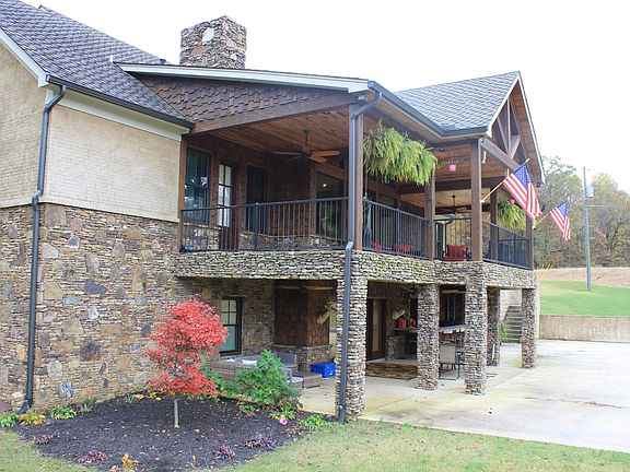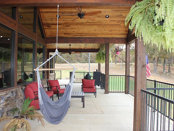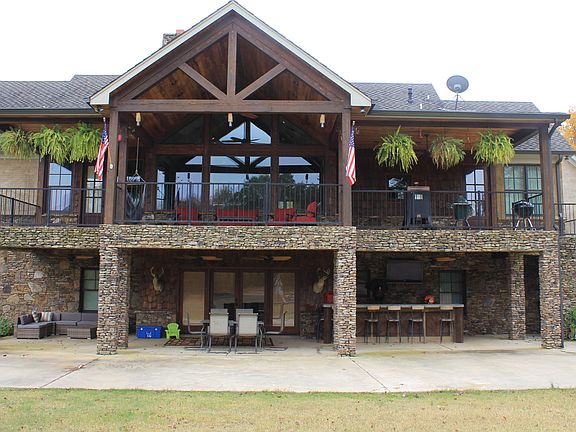 Gorgeous secluded home with a walkout basement. It is perfect for entertaining with two large porch areas, an indoor and outdoor bar, and a theatre room. Master bath features a gas fireplace with TV at the foot of the jetted tub. All closets are walk in with built in shelves. Master bedroom, living room, kitchen and dining are located on upper level. Living room and kitchen have vaulted ceilings with gorgeous wooden beams. Wood burning fireplace in the upstairs living room and downstairs game room. The indoor bar includes built in bottle and glass racks and is also wired with surround sound. The basement also includes a large safe room with a beautiful built in gun safe. Home sits on 12 acres with a great view of wildlife. Office area with unfinished bathroom is located above the garage.