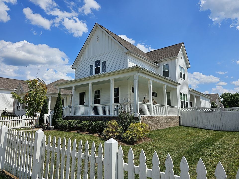 Exceptional quality and stellar location! Super neat and tidy, elegant styled, bright open plan living home. Fantastic community with plenty of great amenities close to Nippers Corner and Concord Rd. Soaring 10ft ceilings. Hardwoods, tile and granite. White Shaker cabinets, stainless appliances, shiplap and subway tile finishes. Updated fixtures and backsplashes. Truly a home to see in person. Fenced in yard, high end gas stove, gorgeous wrap around covered porch, huge island, and Large Primary Suite closet with laundry access. HOA does the lawn maintenance! Whole home water purification system and descaler!