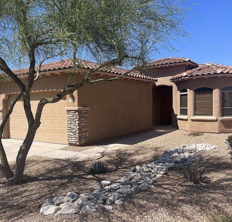 202. Elegant home in a prestigious guard gated community The Villages @La Paloma. Great room with soaring ceilings, fireplace, formal dining area, breakfast bar & eat in gourmet kitchen with granite counters, plenty of cabinets, large pantry, refrigerator, microwave included. Tile, Split bedrooms plan large master bath with separate tub - shower, double vanities, large walk in closet, Laundry room with washer & dryer, rear yard covered patio, grass area and a raised deck for magnificent golf course, sunset and mountain views, 2 car garage, community pool and spa. *Pets are conditional, no more than two pets and $75 per pet in pet rent*