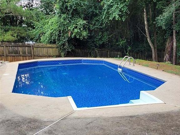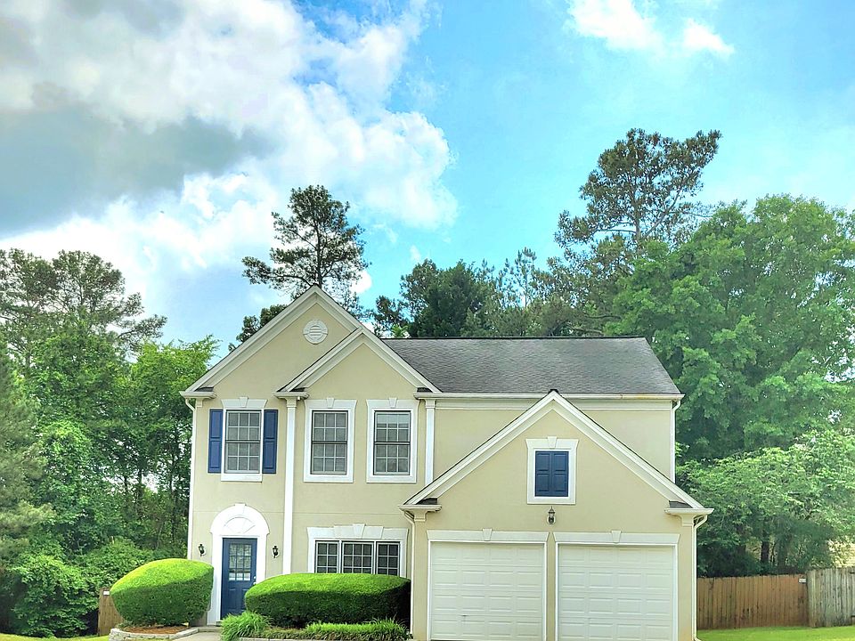 Lovely home in super convenient location. This property has it all, walk into the foyer with dining room to the right and double height living room directly in front. Living room opens to den/family room with fireplace and open breakfast room/kitchen area with granite countertops. A 2 car garage and half bath round out the first level. Upstairs you will find 2 large secondary bedrooms both with walk in closets, hall bath with dual vanity sinks, laundry room, and primary bedroom. Primary bedroom features vaulted ceiling and overlooks the oasis back yard. Primary bath features separate tub and shower, dual vanity sinks with miles of counter space, large walk in closet and water closet. Outside is a spacious patio, mature landscaping allowing privacy, and beautiful pool. This property is your oasis in a quiet subdivision but super close to shopping and about a mile to GA400.