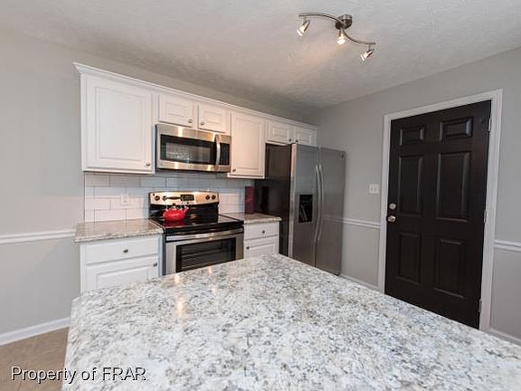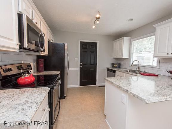 Stunning renovated home with great living space. White kitchen cabinets with subway tile backsplash, new stainless steel appliances and TWO pantries. Beautiful wood floors, ceramic tile and new carpet. Large lower level for entertaining. Fresh paint, updated lighting and hardware throughout. Awesome building in back with power, insulation and air conditioning. New roof 2017. Ready to move in! All Just minutes from Fort Bragg!