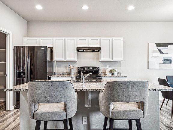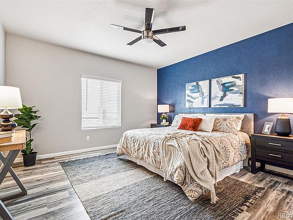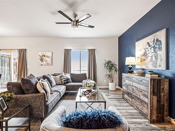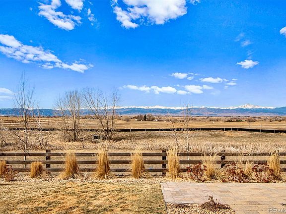 Beautiful, UNOBSTRUCTED FRONT RANGE MOUNTAIN VIEWS from this easy to live in ranch-style home. This open and bright 3 bed, 2 bath is located just West of I25 in the coveted Wyndham Hill neighborhood. Featuring scenic views, open space parks, trails, a community clubhouse, pool and elementary school. Great floor plan with quality finishes including luxury vinyl flooring in all the main living areas and bedrooms, tile in the bathrooms and granite countertops throughout. Additional features include a huge primary bedroom with barn door, tall ceilings, expansive kitchen pantry, bar seating at the island, eat-in kitchen space, separate laundry room, ceiling fans, tons of storage space and an electric charging station in the garage. Third bedroom also acts as a great office space. Washer, dryer and refrigerator are included. Low maintenance yards are professionally landscaped with a barn-wood enclosed privacy patio and stone walkway in the back, and Xeriscaping in the front. Impeccably maintained with a new roof in 2023. Enjoy easy access to charming downtown Frederick, Erie, Longmont, Lafayette and Boulder. Sit on the covered back patio and enjoy the spectacular mountain views, sunsets, bald eagles, hawks, and listen to the frogs sing. It's a private oasis just a short drive to all the amenities. This amazing home is a must see!