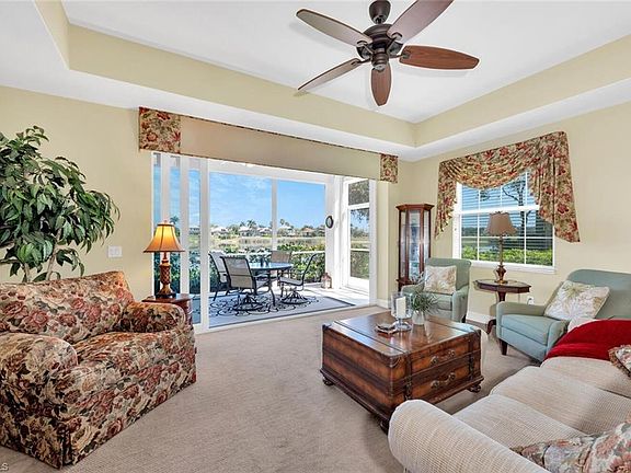 C9150 - Lovely first floor corner residence with huge lake view and convenient proximity to community pool and clubhouse. Desireable 2 Car garage with lots of extra parking close by. Sold turnkey furnished, this unit is ready for you to move in and enjoy the rest of the Spring season as of April 2, 2023. Excellent space for gathering or entertaining and large walk-in storage room. Just a short drive to the Strand commercial center with Publix grocery store, coffee shops, Skillets and Subway restaurants, dry cleaning and salons services. Just five miles to the beach and close to Mercado, Coconut Point Shopping Center, Hospitals, Airports and the “hot spot” infamous Seed to Table. The resort style Strand clubhouse offers poolside dining with the Island Bar and restaurant, tennis, pickleball, croquet, bocce ball, Jr Olympic size salt water pool, state of the art fitness center all included with your mandatory social membership. Upgrades to golf and sports memberships are available.