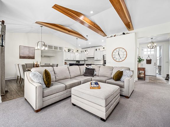 This beautiful, 5-bedroom, 4-bathroom home exudes both comfort and style, with a layout optimized for modern living and on a lake front lot perfect for enjoyment, this one has it all! Featuring a freshly painted interior, rich hardwood flooring, enameled trim, vaulted ceilings, wood beams, and large picture windows spanning the back of the house providing spectacular views of the lake behind from every room! 3M professionally installed tint on the back windows in the living room and the sunroom windows ensures the interior remains cool and protected from excessive sunlight. This advanced tinting system thermoregulates the indoor temperature by dissipating 85% of UV rays and provides exterior privacy through its reflective properties. The kitchen is a dream for any cooking enthusiast, with elegant quartz countertops and a beautiful herringbone marble backsplash, it has a layer of sophistication added to the kitchen’s overall design, offering aesthetic appeal and functionality. Showcasing custom enameled cabinetry with lit glass upper cabinets, above cabinet lighting, custom vent hood, lazy Susan, spice drawer, large center island equipped with convenient USB outlets and a large walk-in pantry equipped with a working countertop and outlets and a switch connected to a timer, allowing for easy operation of Christmas lights from inside! Retreat to the primary bedroom with vaulted ceiling, ceiling fan, custom wood blinds, ensuite bathroom with quartz countertop double sink vanity, full tile shower, private toilet and large walk-in closet. One additional front bedroom and full bathroom featuring an elegant grasscloth wallpaper, adding a textured and luxurious feel, complete the main level. The flooring throughout the home is a mix of hardwood, carpet, tile and luxury vinyl plank (LVP), ensuring durability and ease of maintenance. LVP is used in high-traffic areas including the laundry room and landing on the flex level leading to the sunroom and bedroom also on this level. The laundry room is dressed with an arabesque tile backsplash, adding an elegant touch to an often-overlooked space. The bedroom features unique wainscoting on the ceiling, creating a custom, visually interesting design element. The sunroom is a versatile space with three large removable glass panels for easy access to fresh air and the outdoors. The sliding door is fitted with built-in blinds and features a double deadbolt that can be engaged even when the door is slightly cracked, offering enhanced security when wanting a breeze. The sunroom also includes a cozy gas fireplace with a beautiful glass tile surround, making it a perfect spot to relax and unwind year-round. The basement, finished with a striking Tricorn Black color scheme, offers additional living and entertainment space. The area features a wet bar with granite countertops, custom cabinets, and a built-in wine holder, making it perfect for hosting gatherings, under-cabinet lighting and pendant lights enhance the bar area’s ambiance, providing a stylish and functional space with LVP flooring for added durability. The basement is also equipped with an advanced audio-visual system, including AV surround sound with built-in ceiling speakers, creating a fully immersive entertainment experience. Two bedrooms one featuring a shiplap accent wall and the a 4th bathroom complete the lower level. The backyard is a true entertainment oasis, designed to accommodate up to 20 guests comfortably. A pergola, complete with a ceiling fan, party lights, solar lights on privacy fences, sunshade and privacy door, which can be used to enclose the hammock area, built-in bar, under soffit lighting, concrete and turf for low maintenance, fully fenced, irrigation well and sprinkler system and easy access to path along pond that leads to clubhouse, pool and playground.Whether enjoying a quiet evening by the fireplace in the sunroom or hosting a lively backyard barbecue under the pergola, this house is ready to be called home!