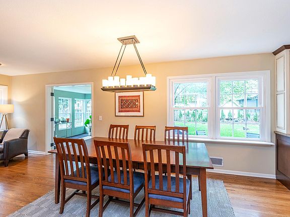 Bassett Creek Beauty - Just 1/2 block West of Bassett Creek Nature Area. Charming cottage style with quality custom kitchen cabinets in the bright south facing kitchen & a large dining area overlooking flat, fenced backyard. A wood burning fireplace and hardwood floors throughout the main level add to the charm. A generous mud/laundry room opens both to the attached 2 car garage and backyard. A bedroom and 1/2 bath on the main level is great for an office/guest bedroom. 3 bedrooms on the upper level with ample storage, a full bath & primary bedroom walk-in closet makes life organized and easy! The 4 season sunroom and patio are lovely places to relax and enjoy the backyard. The finished basement is a great place to watch movies/play games and has plenty of room to add a 5th bedroom. New A/C and Furnace new in 2021.