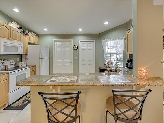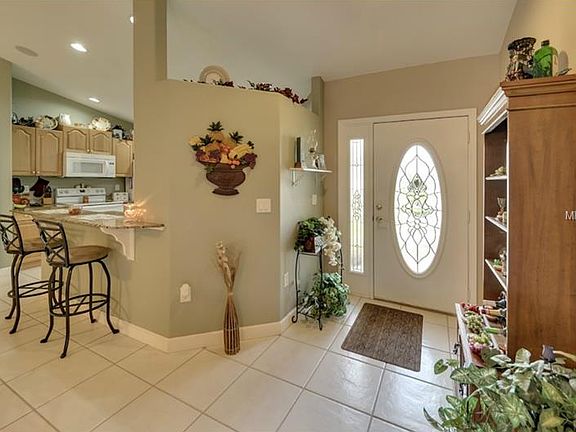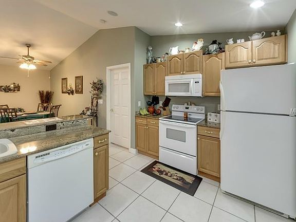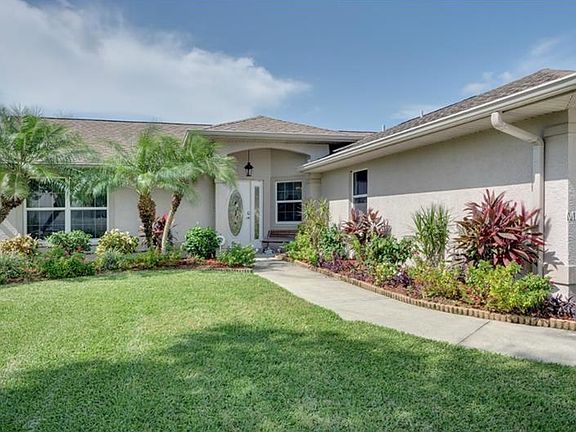 WOW! Custom built 3 bedroom 2 bath pool home with 3 car garage, now available in Kew Gardens. From the moment you pull up you will see the attention to detail with the immaculate landscaping an professionally installed curbing. This homes kitchen offers a large pantry, granite counter tops and wood cabinets. The master is equipped with a Jacuzzi tub, cultured marble walk in shower and large walk in closet. The gorgeous French doors lead to the pool area which is oversized, re-screen, new pool pump and features surround sound too. Since this was one of the only homes in Kew Gardens built by a private builder it has a lot of features you don't see, the walls are all insulated to reduce power cost, floor jacks were installed, water softener and much more. The hot water was just replace & the A/C is high efficiency less than 5 years old. If you are looking for a great split plan in an area where there are no CDD's and the HOA is only $150 per year, then this is it! Take time to see the best Kew Gardens has to offer.